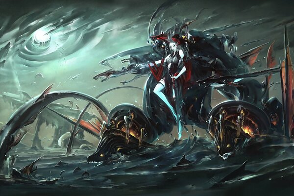 Monster auf dem Hintergrund des Mondes unter den Scherben