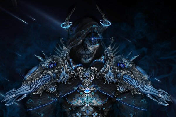Ein cooles Monster mit Ketten, umgeben von Schneetürmen