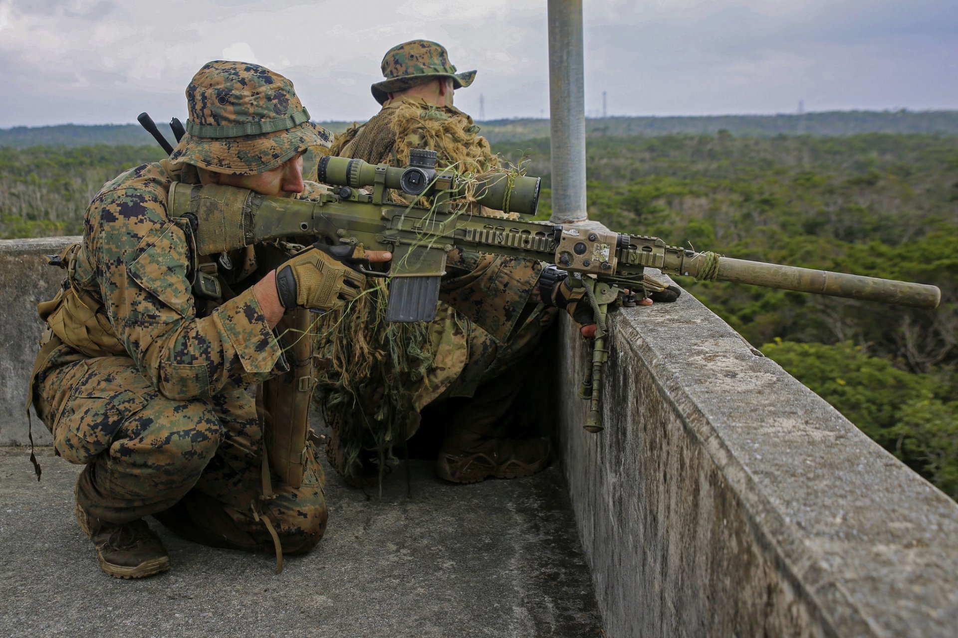 Scharfschützen mit gewehren auf dem dach des hausesScharfschützen mit Gewehren auf dem Dach des Hauses