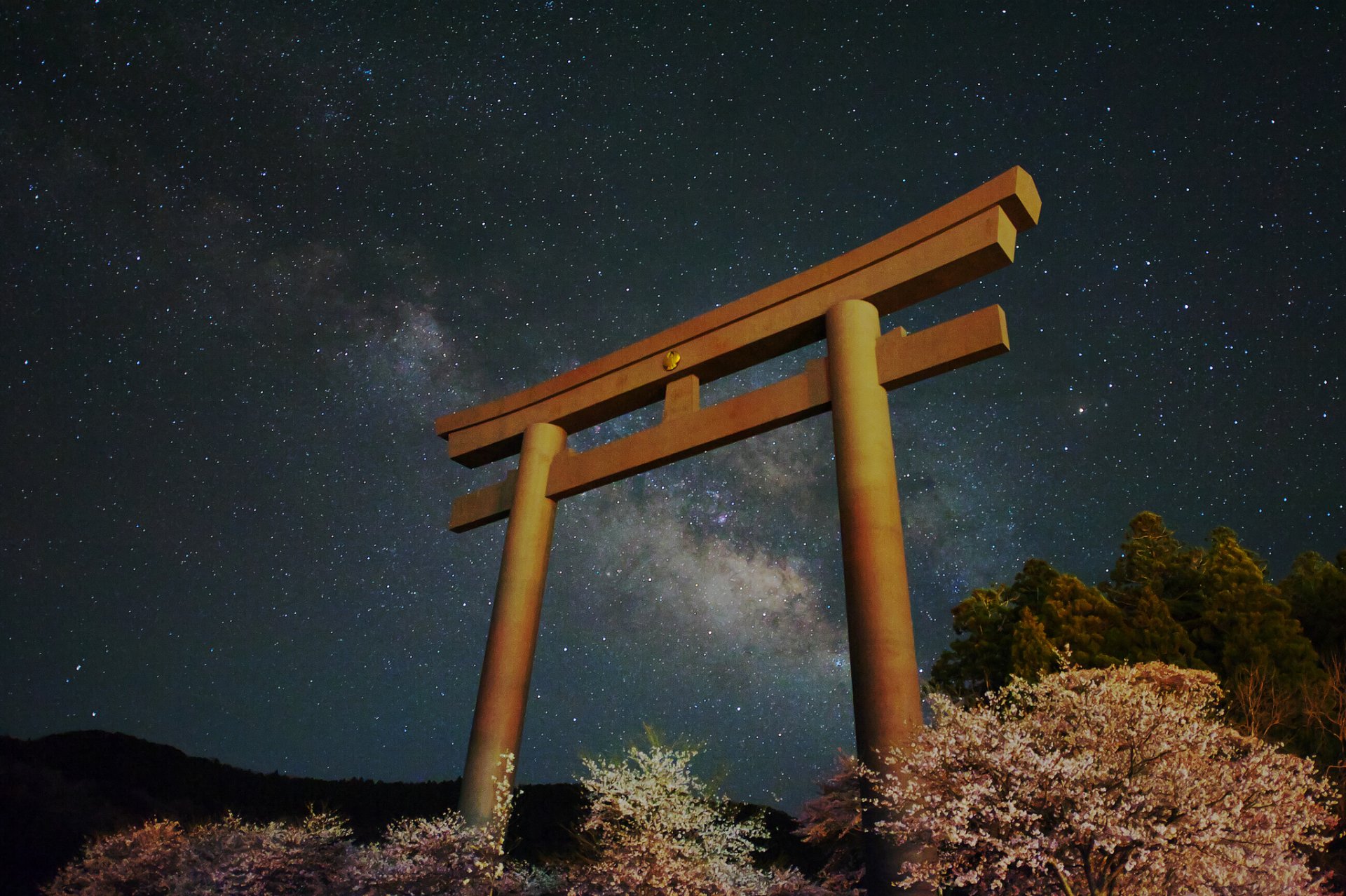 Japans nächtliche Milchstraße durch das Tor von Toria