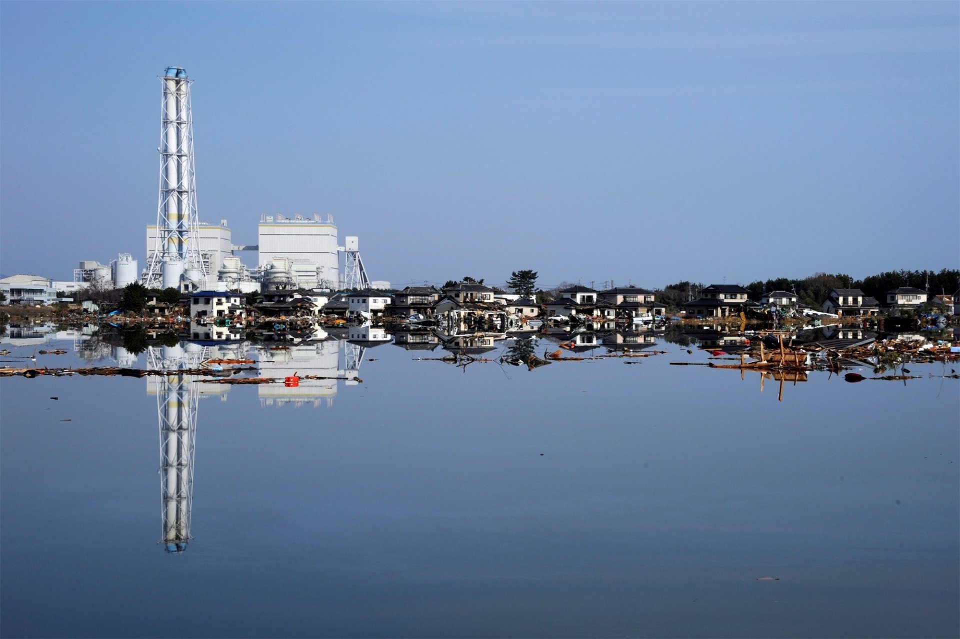 Häuser in japan nach überschwemmungen spiegeln sich im wasser widerHäuser in Japan nach Überschwemmungen spiegeln sich im Wasser wider