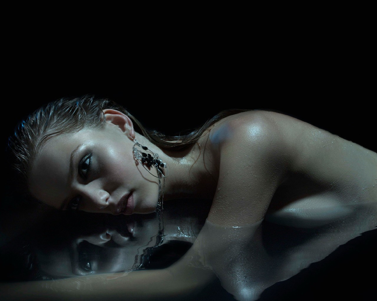 Das Mädchen hat ein Fotoshooting im Wasser gemacht