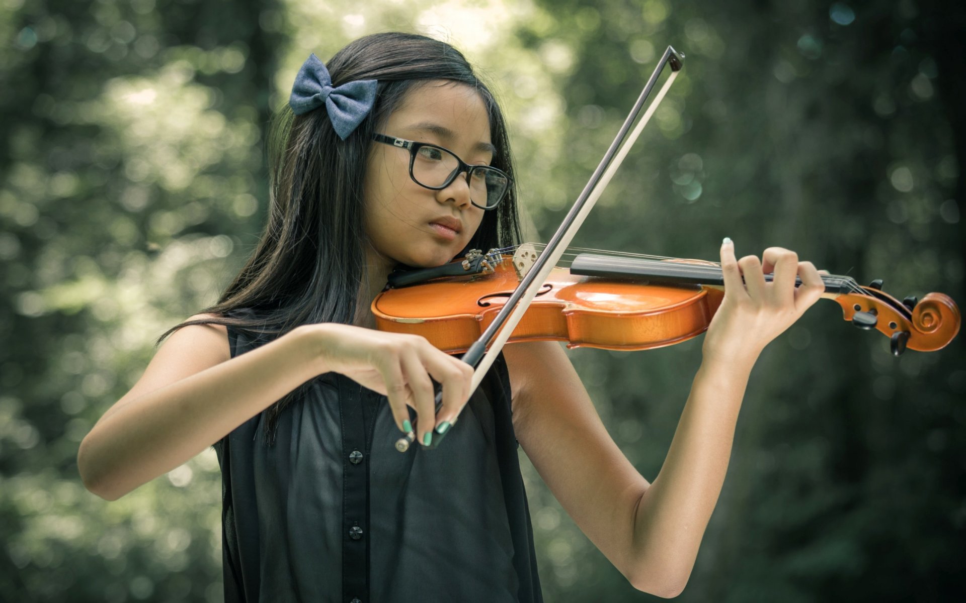 Das Mädchen ist eine Geigerin. Sommertag