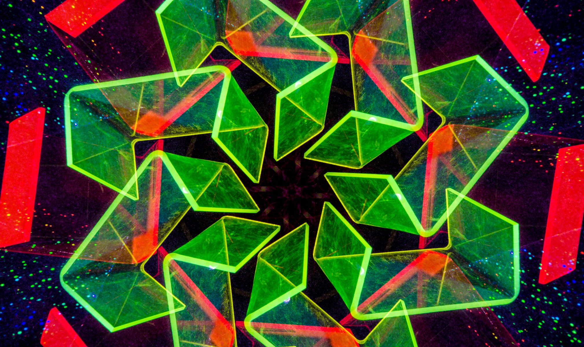 Die hellen mehrfarbigen Spiralen und Muster sind faszinierend