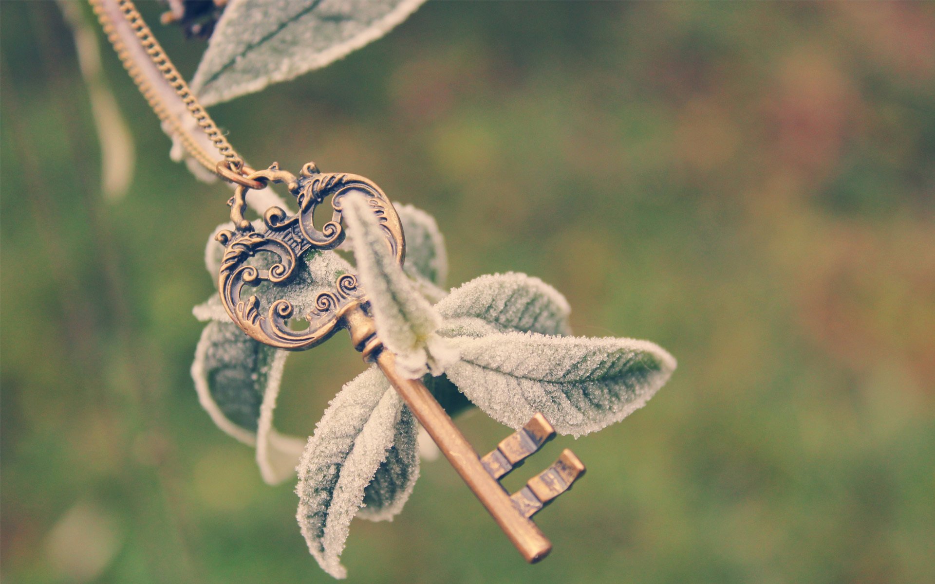 Der Schlüssel ist auf dem Zweig. Frost auf den Blättern