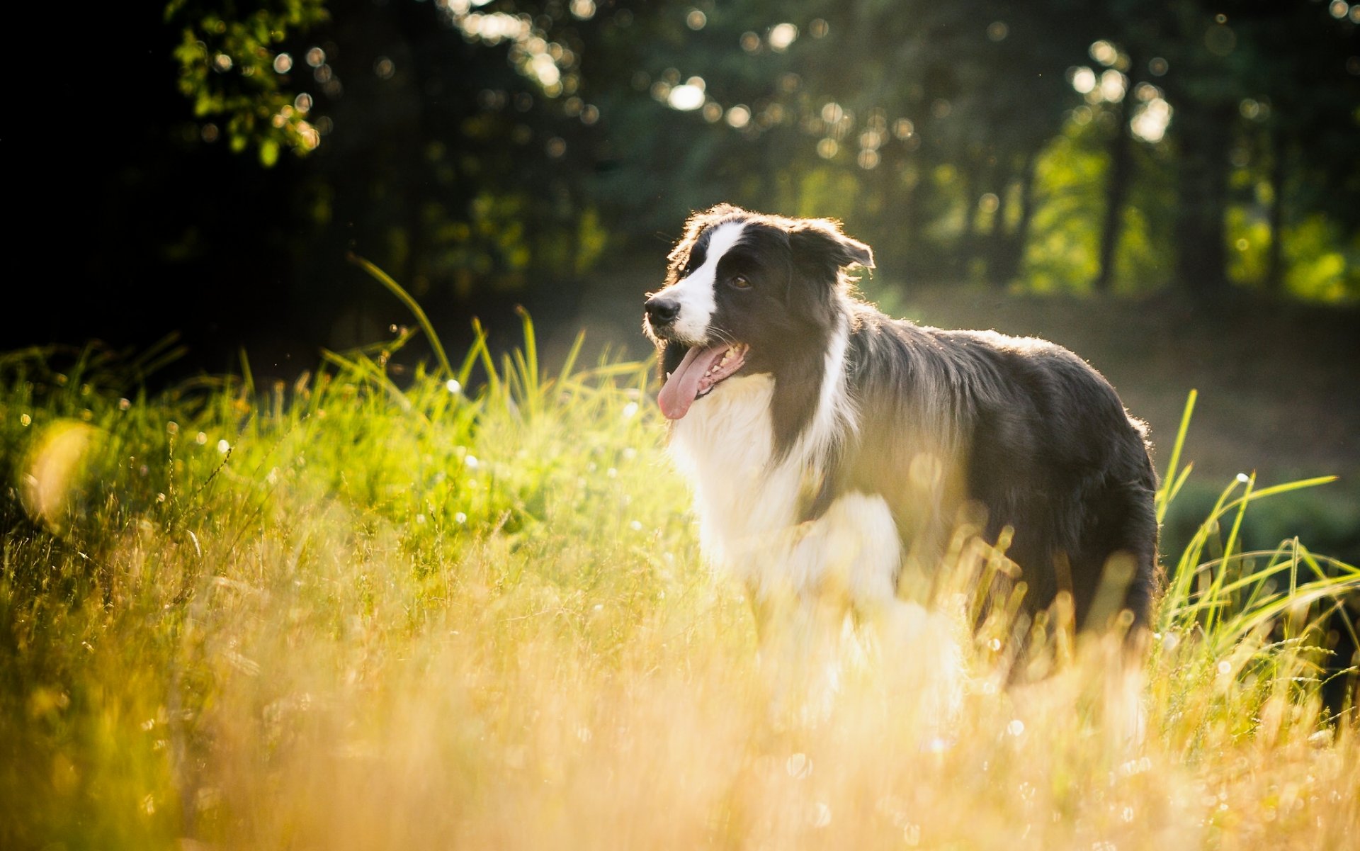 Der Hund liegt mit ausgestreckter Zunge auf dem Boden