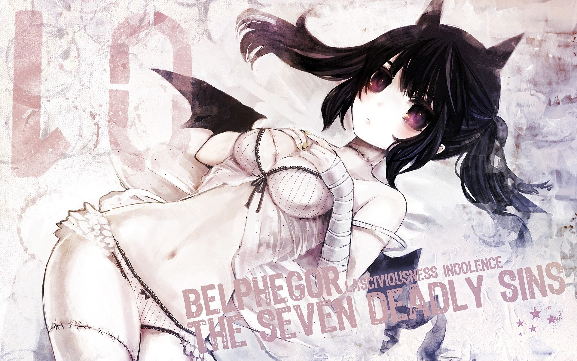 Mädchen in Originalunterwäsche, mit Hörnern, Flügeln und einer Narbe