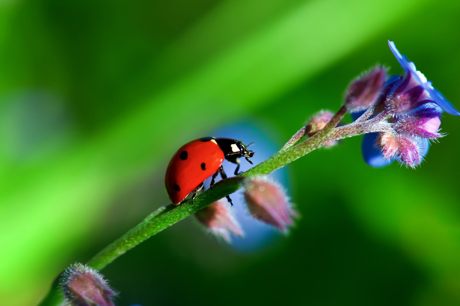 Marienkäfer sitzt auf dem Blütenstiel