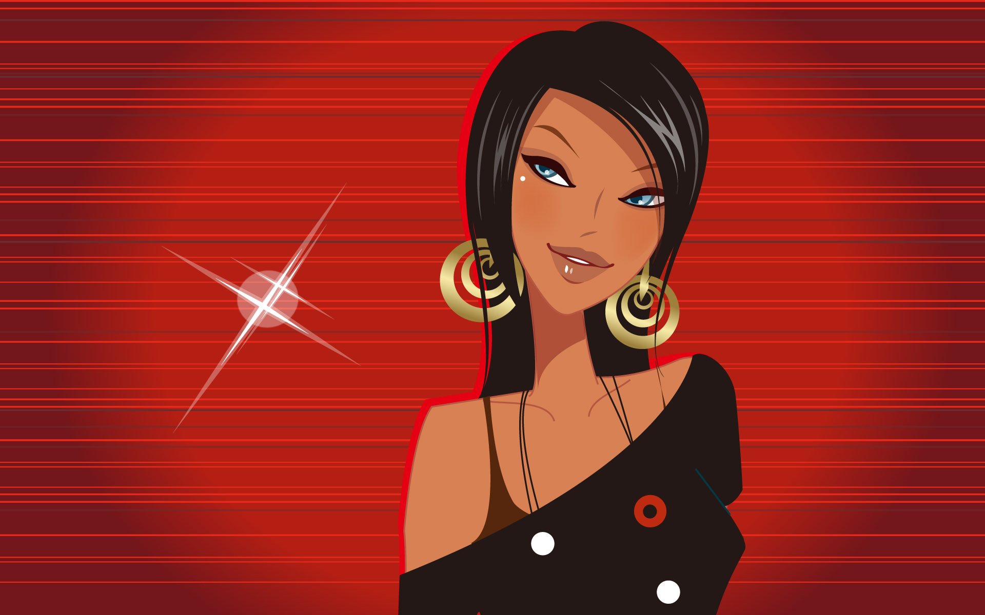 Dunkelhaarige mädchen mit stilvollen ohrringen in den ohren auf rotem hintergrundDunkelhaarige Mädchen mit stilvollen Ohrringen in den Ohren auf rotem Hintergrund