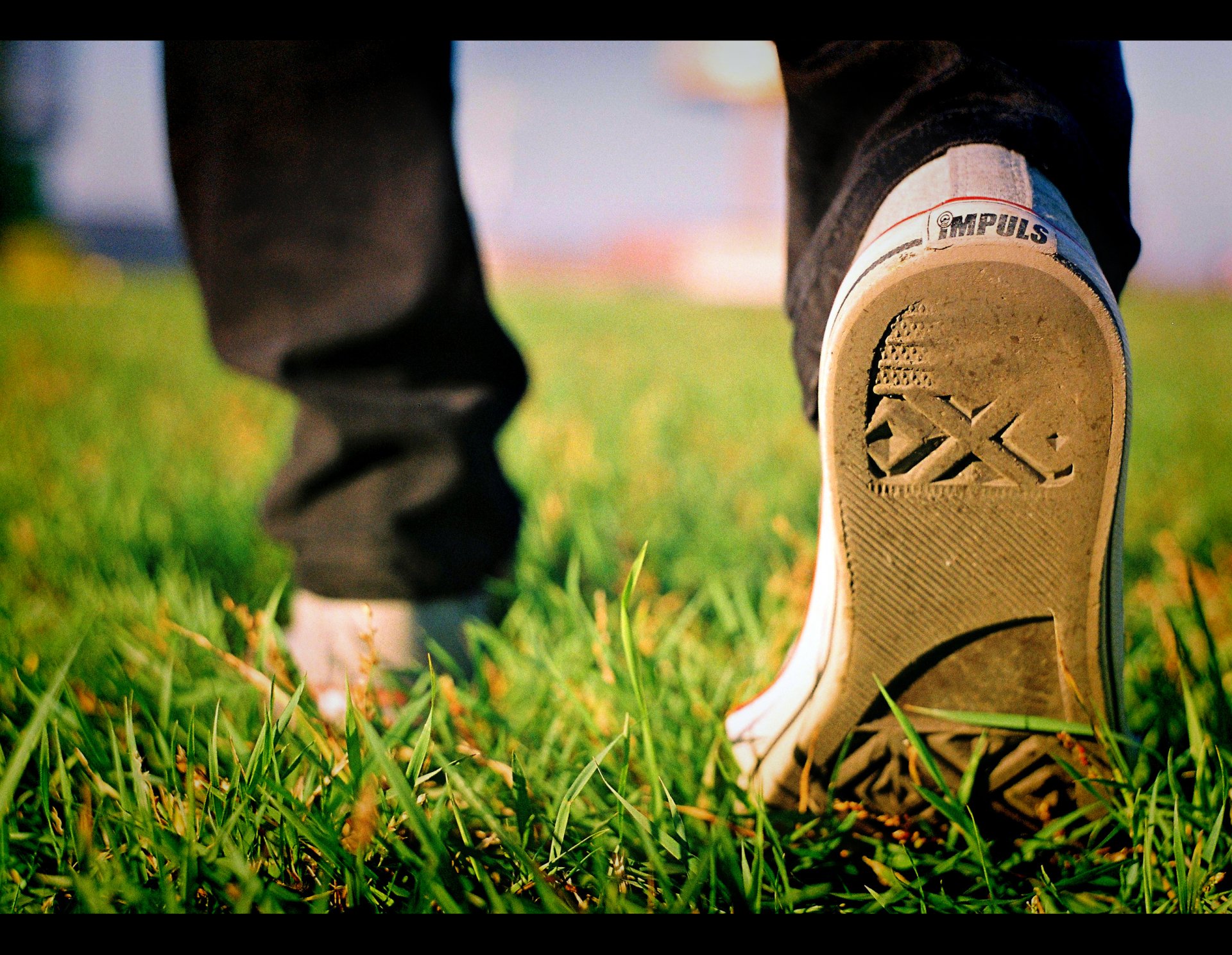Alte Turnschuhe mit Schnürsenkeln auf dem Asphalt