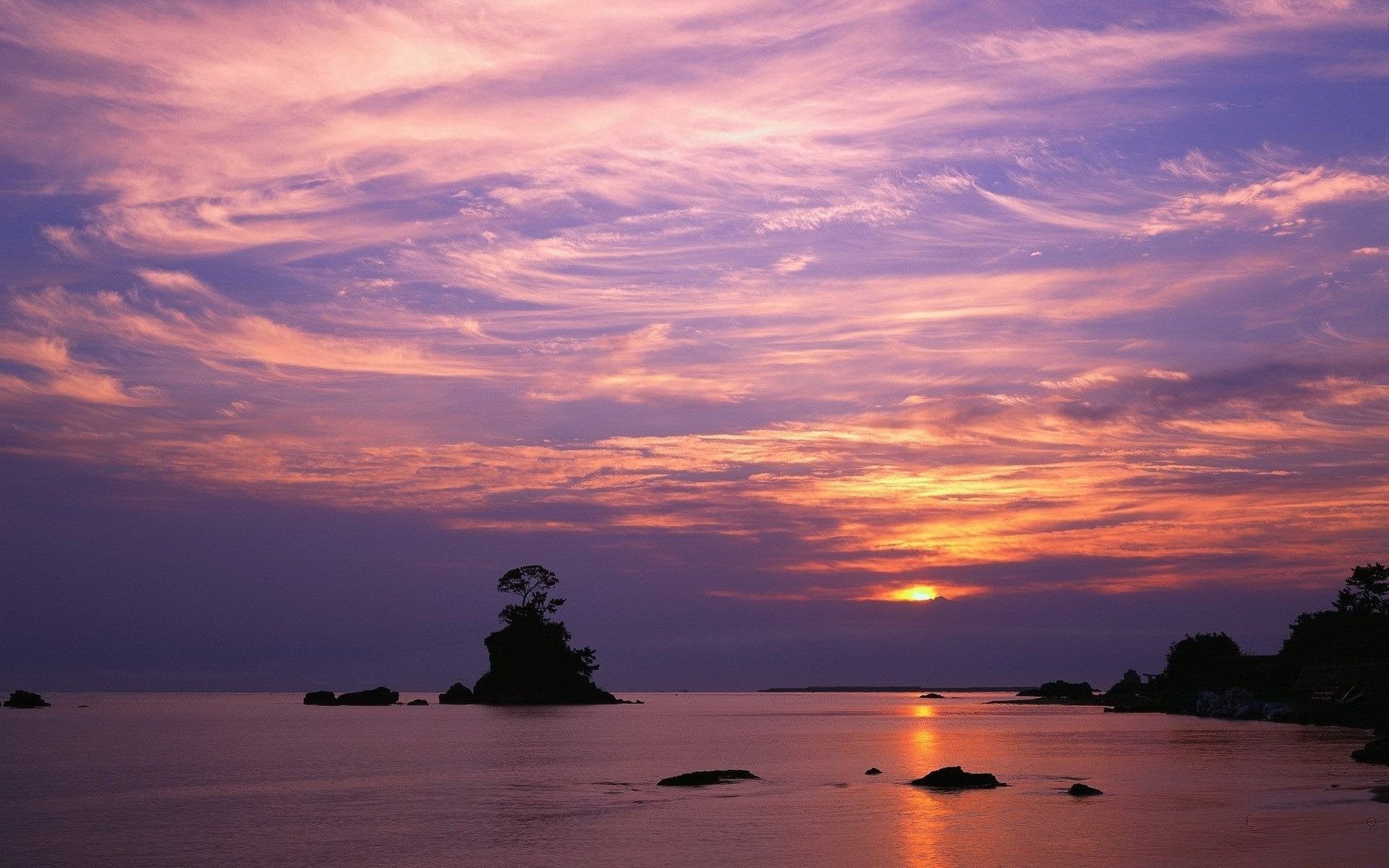 Orange Sonnenuntergang, Meeres- und Himmelshorizontlinie
