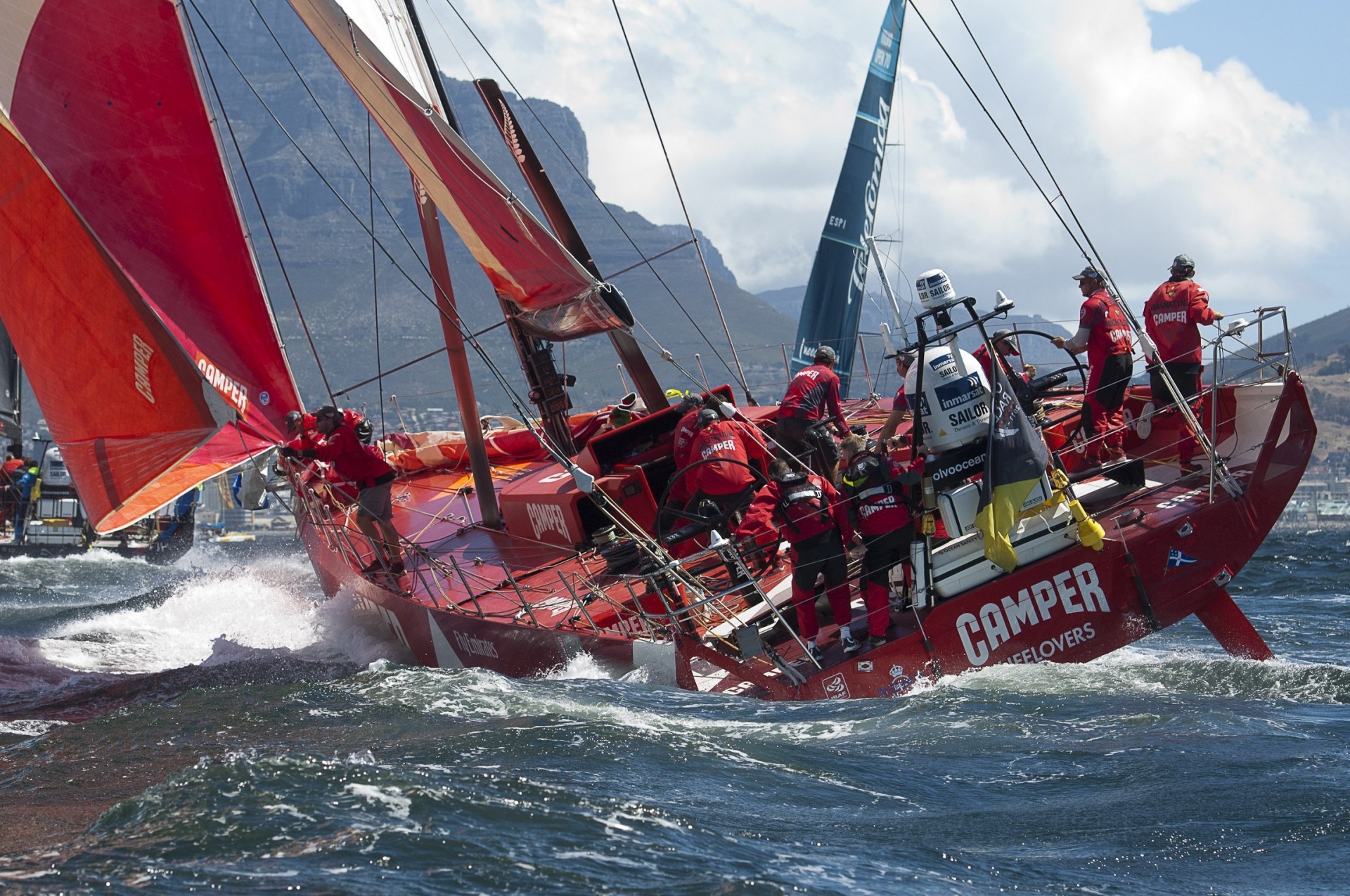 Zeichnung eines Schiffes mit Segeln im Ozean auf einer Welle im Sturm