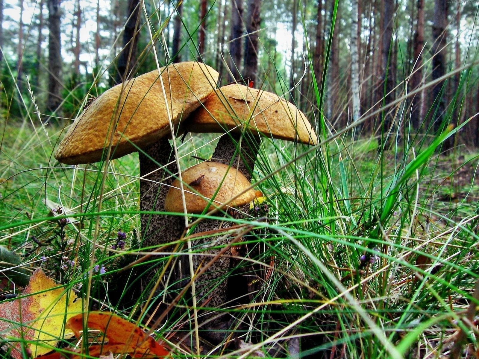 Waldpilze wachsen im Gras