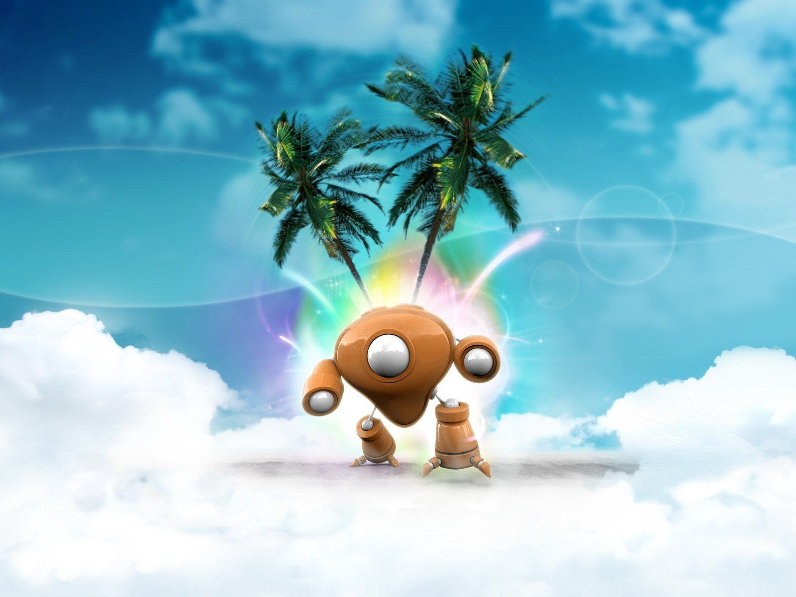 Tropen. insel im meer vor der küste mit palmen vor dem hintergrund der wolkenTropen. Insel im Meer vor der Küste mit Palmen vor dem Hintergrund der Wolken