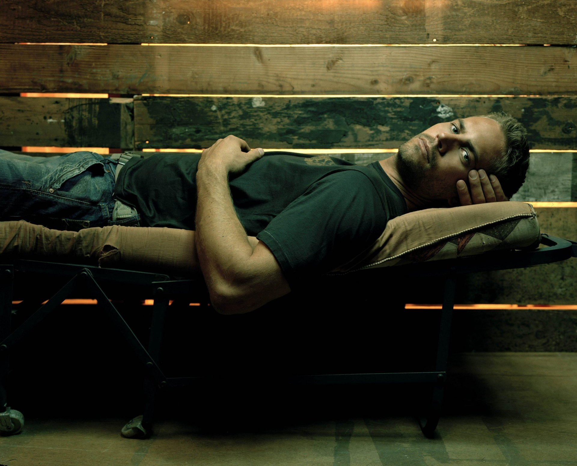 Der männliche schauspieler paul walker liegt auf einem klappbettDer männliche Schauspieler Paul Walker liegt auf einem Klappbett