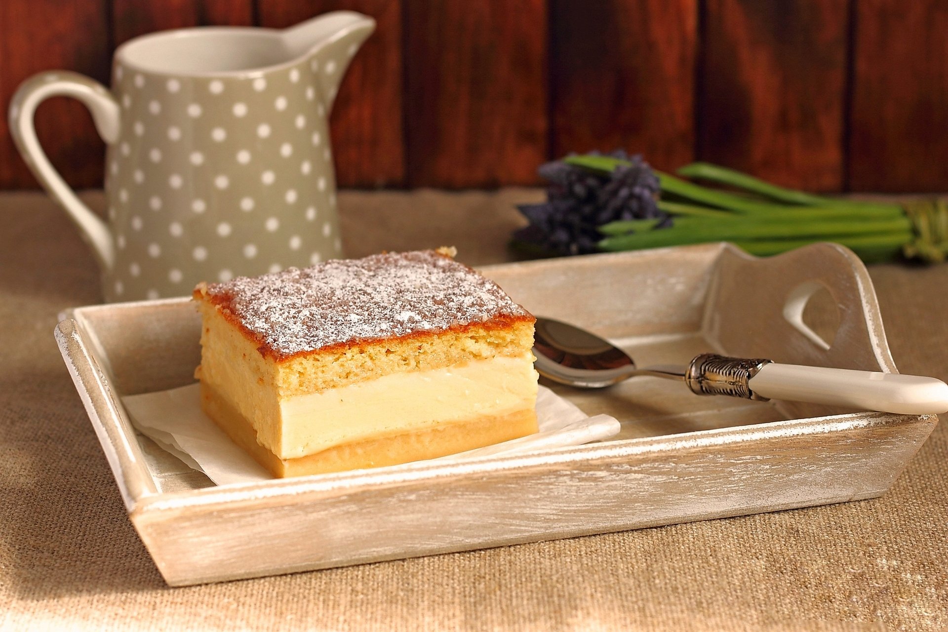 Blätterteig-Dessert mit Puderzucker auf einem Tablett