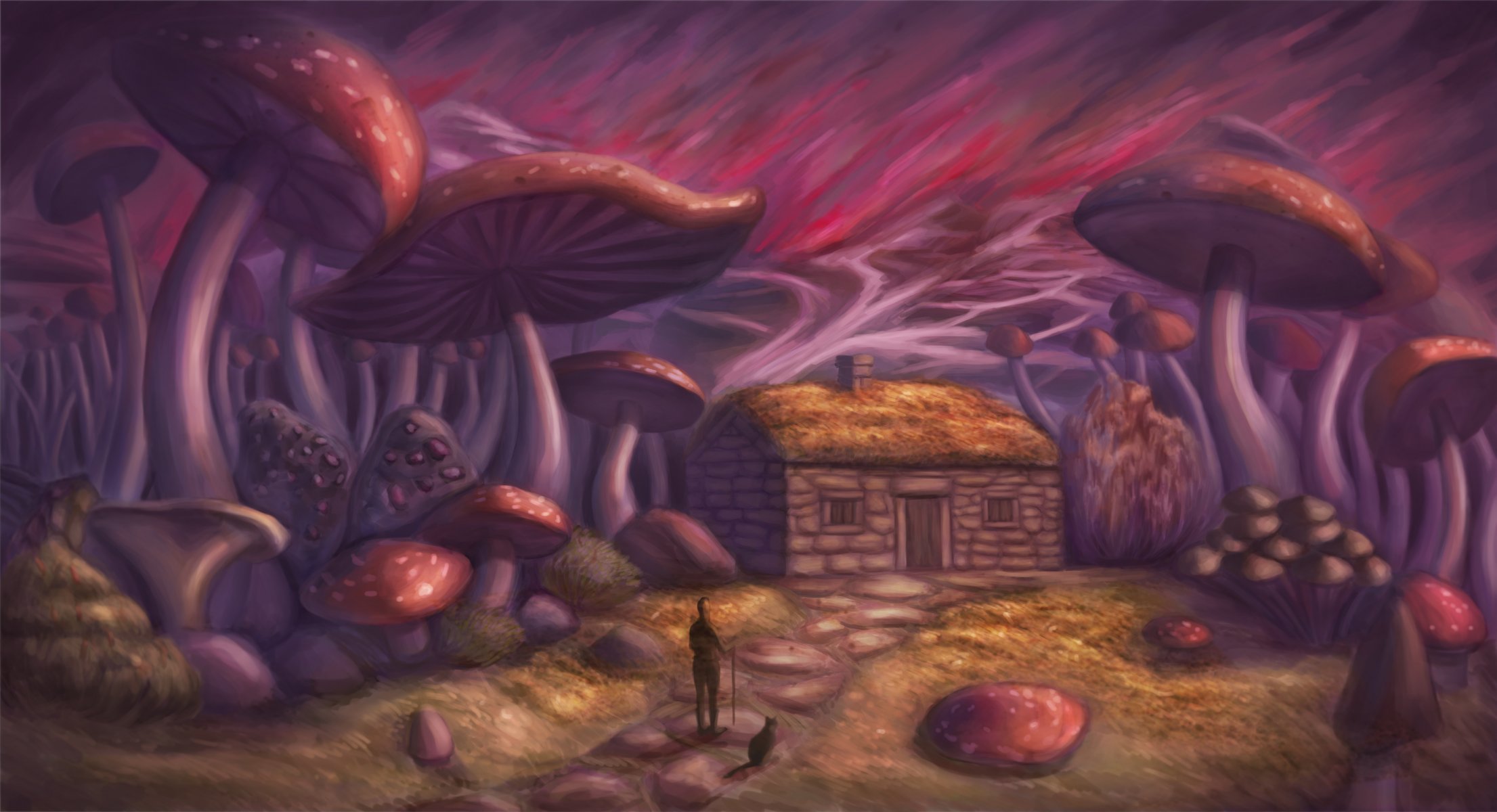 Animierte Pilzgrafik nach Art eines Zeichentrickbildes