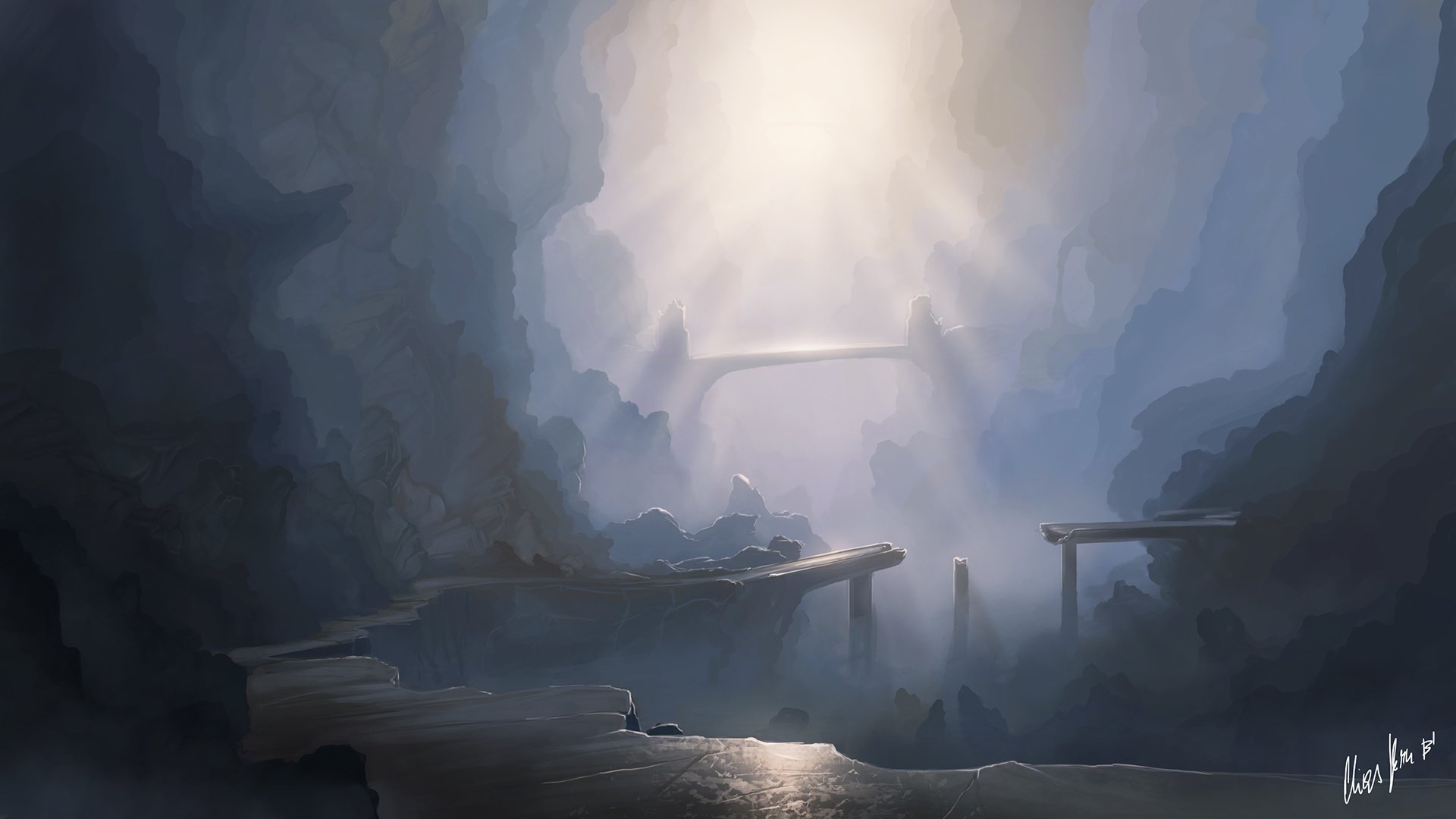 Eine Insel am Himmel auf Ketten über dem Canyon