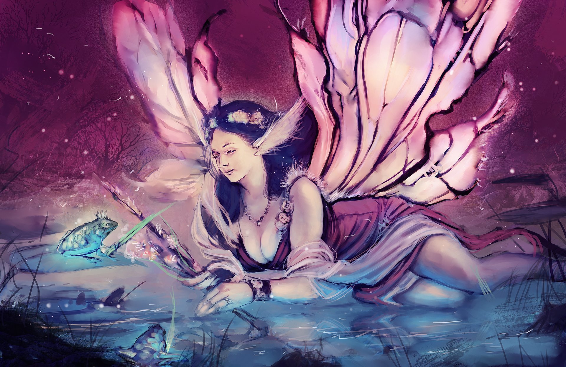 Das mädchen, das von einer fee mit flügeln dargestellt wirdDas Mädchen, das von einer Fee mit Flügeln dargestellt wird