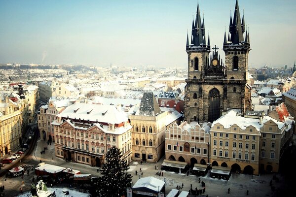 Die Sonne erhellt den Altstädter Ring Tschechiens