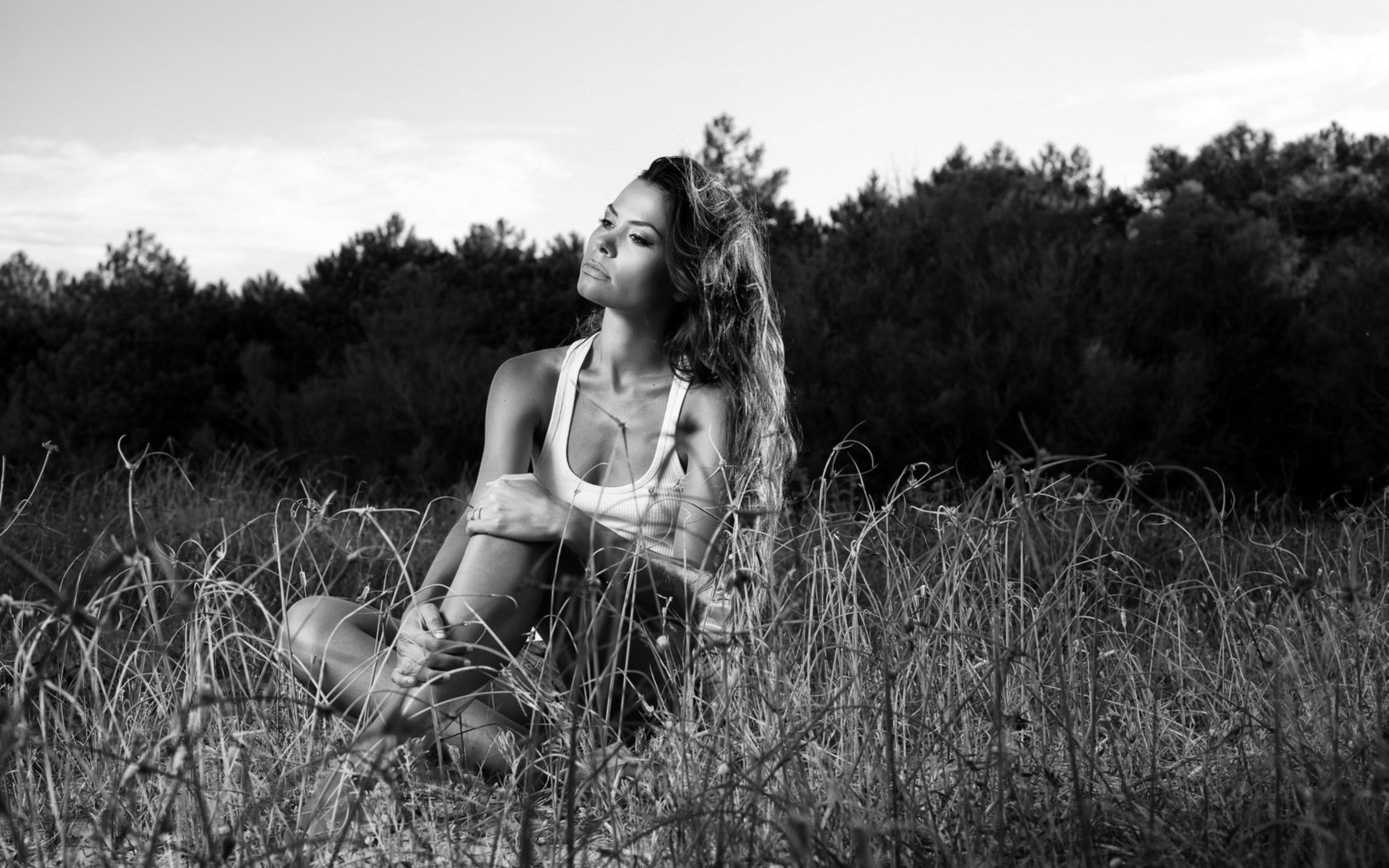 Schwarz-Weiß-Foto von zwei nackten Mädchen, die sich küssen