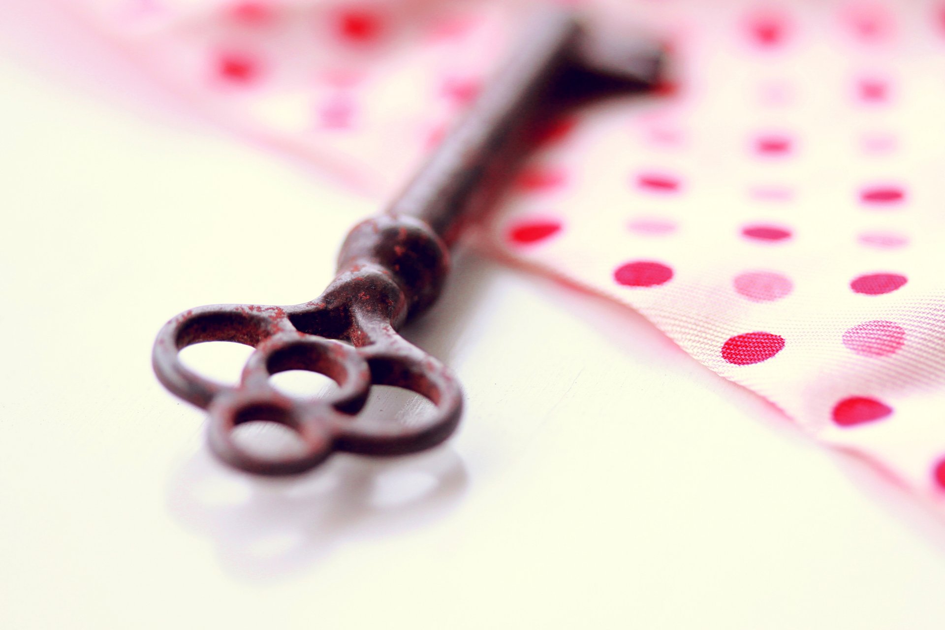 Makrofoto eines vintage-schlüssels auf dem tisch