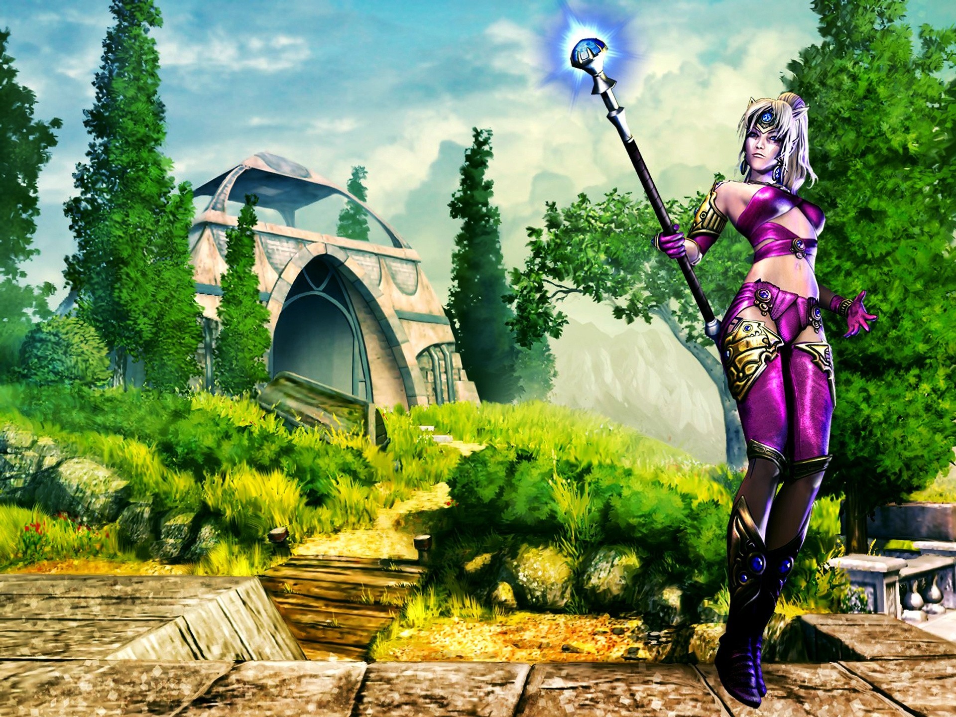 Mädchen mit einem magischen stab in einem luftigen kleidMädchen mit einem magischen Stab in einem luftigen Kleid