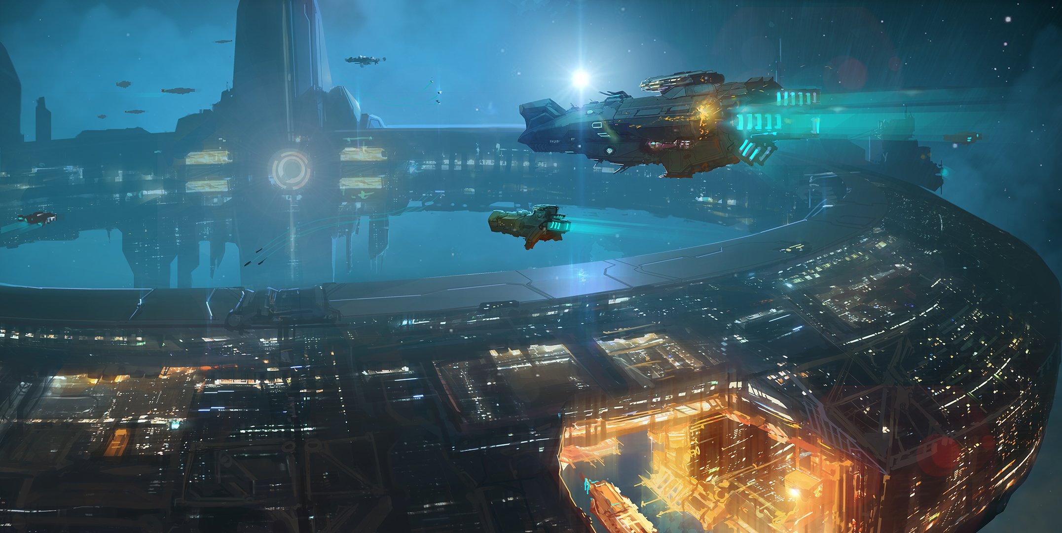 Fantastisches foto der raumstation und des schiffesFantastisches Foto der Raumstation und des Schiffes