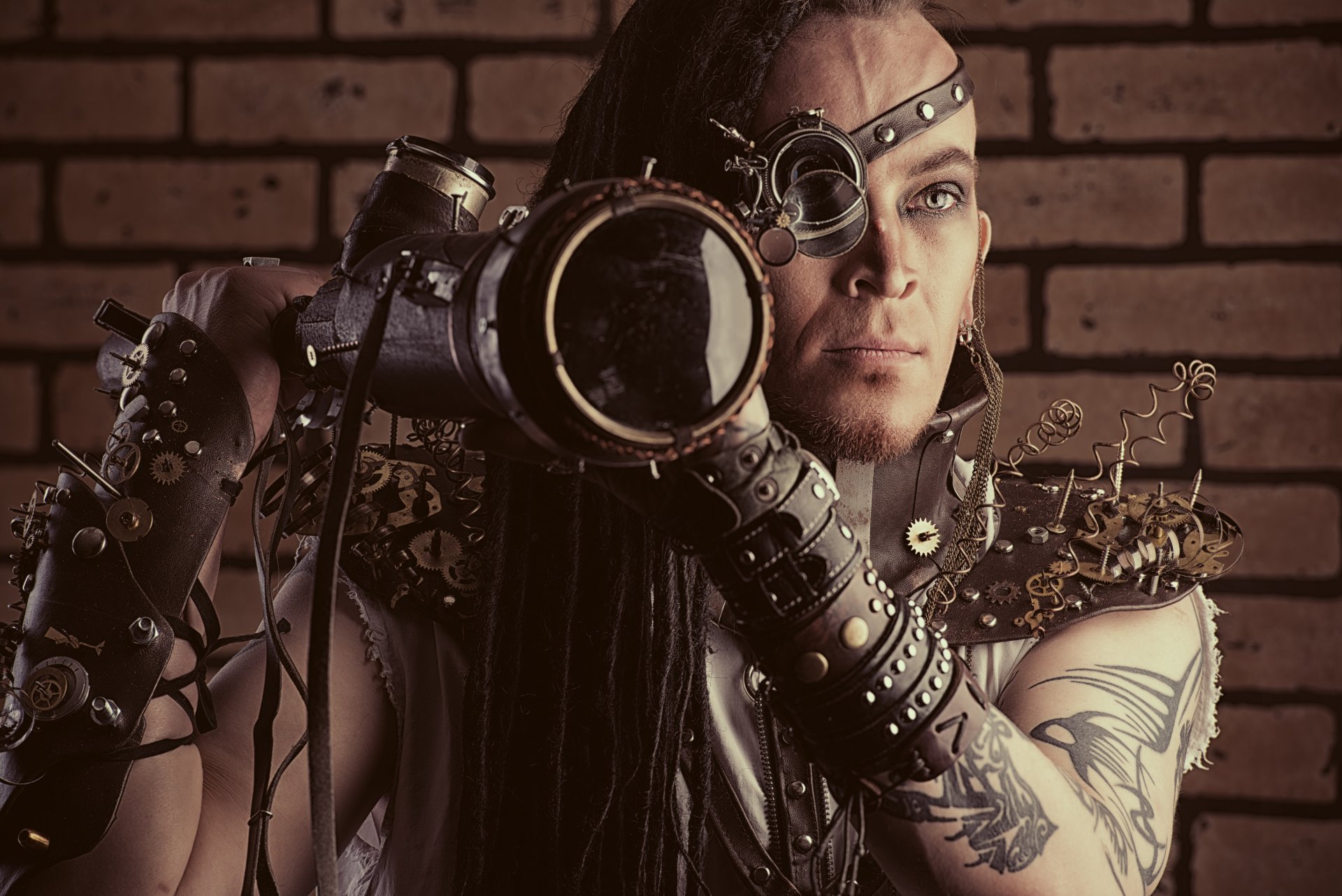 Ein mädchen, das im retro-stil gekleidet ist, sieht vom bildschirm ausEin Mädchen, das im Retro-Stil gekleidet ist, sieht vom Bildschirm aus