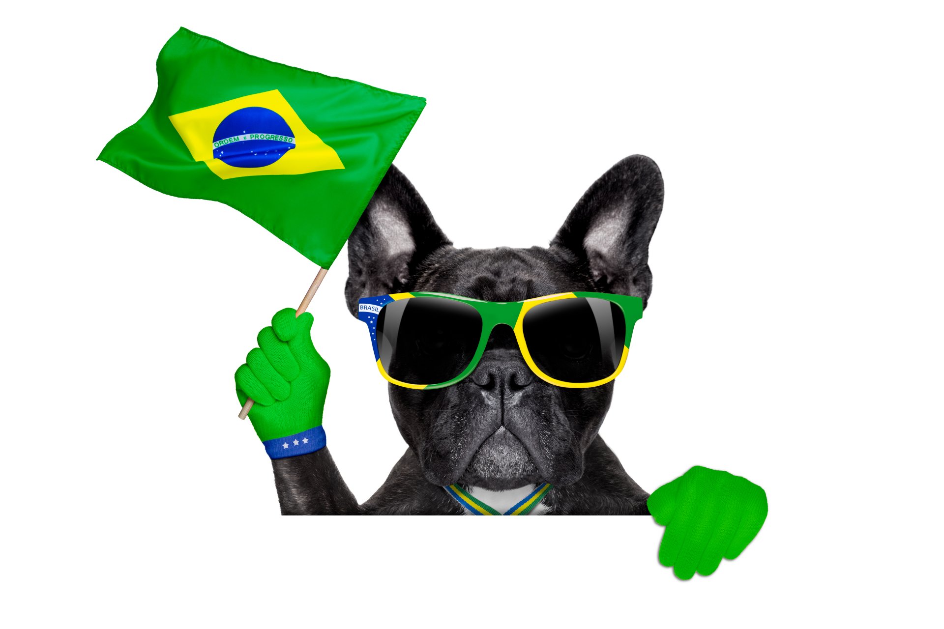 Mädchen mit Choper im Bikini nm Flagge Hintergrund