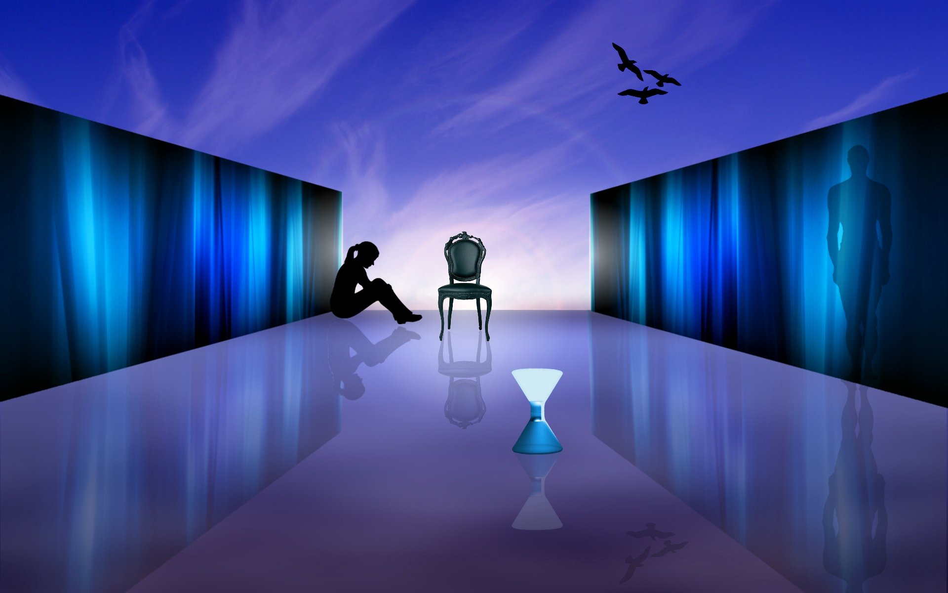 Digital art postkarte mit silhouette eines mädchens mit blumen im haar und auf der schulterDigital Art Postkarte mit Silhouette eines Mädchens mit Blumen im Haar und auf der Schulter