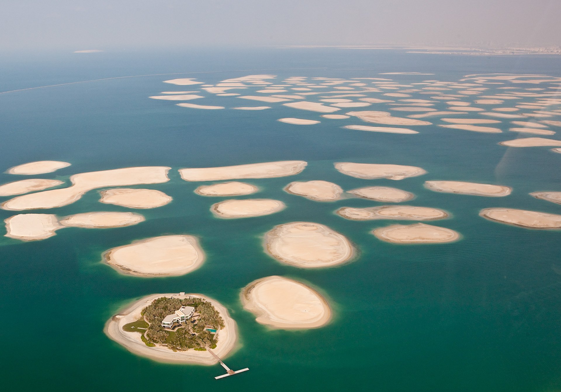 Ferienhaus mit Strohdach zwischen Palmen und Meereswellen