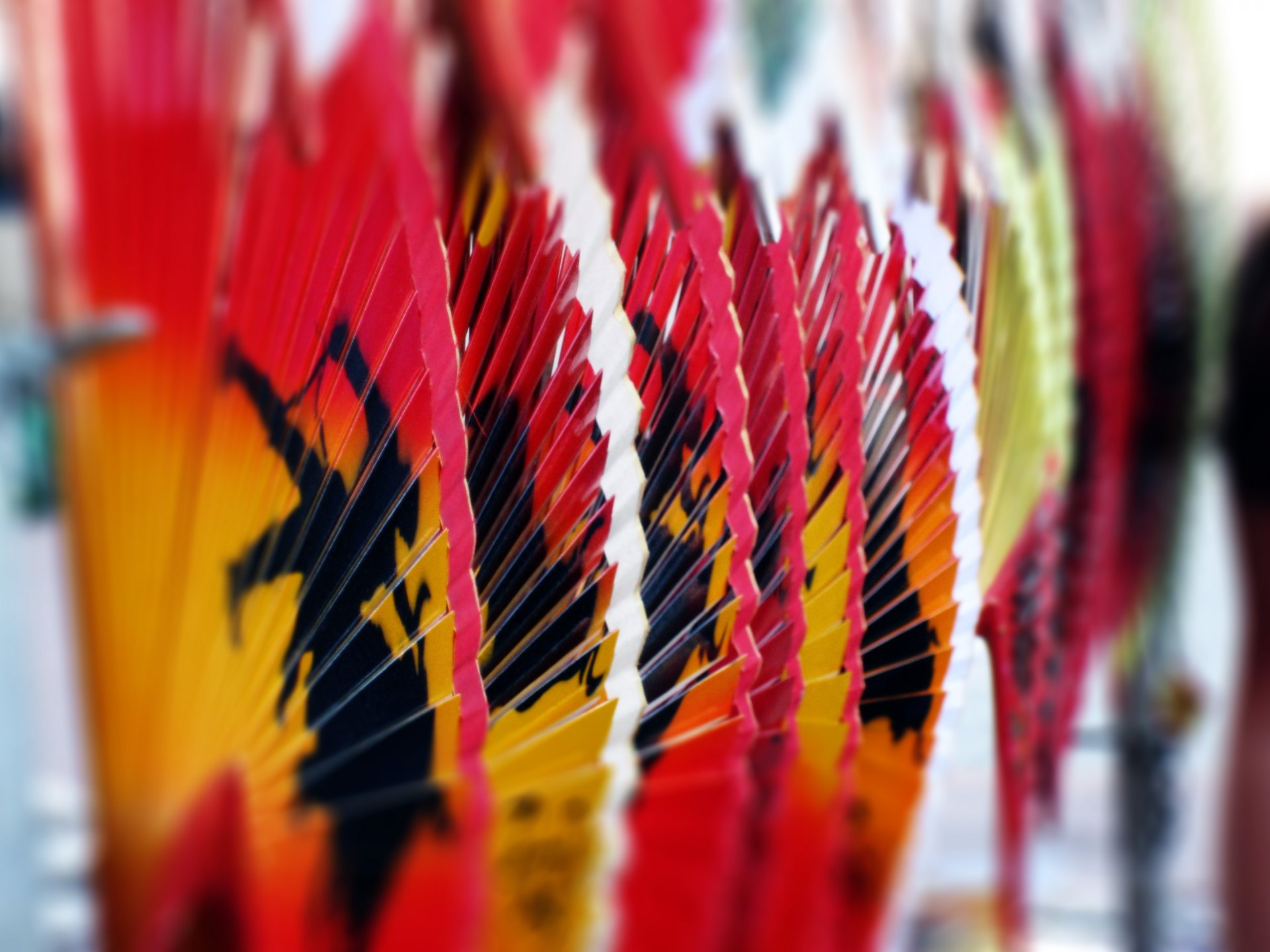 Abstraktion, gelb-rote Unschärfe auf grauem Hintergrund