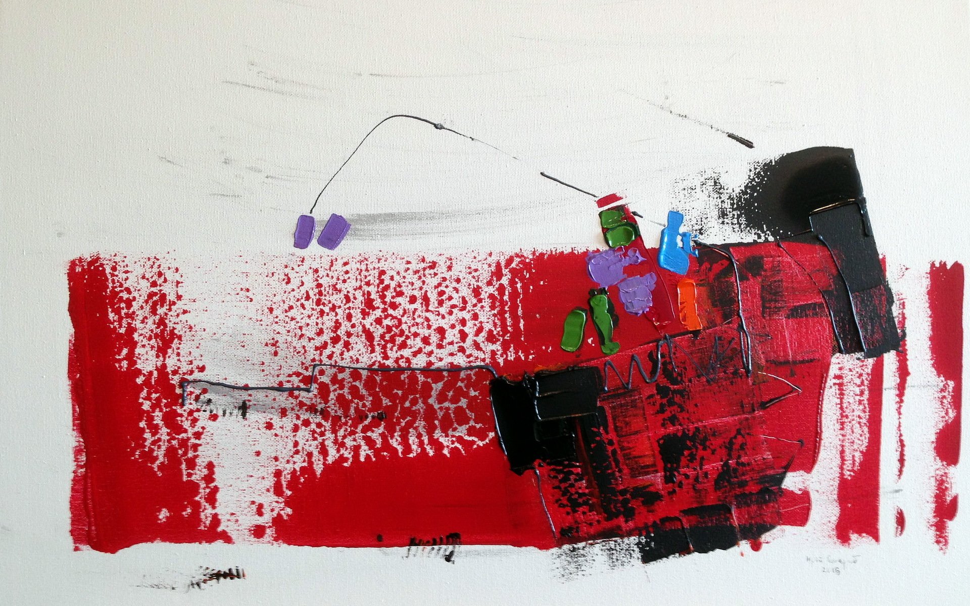 Rote Flecken, schematisch und mit schwarzen Flecken besprüht