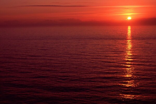 Leuchtend roter Sonnenuntergang vor dem Hintergrund des Meeres