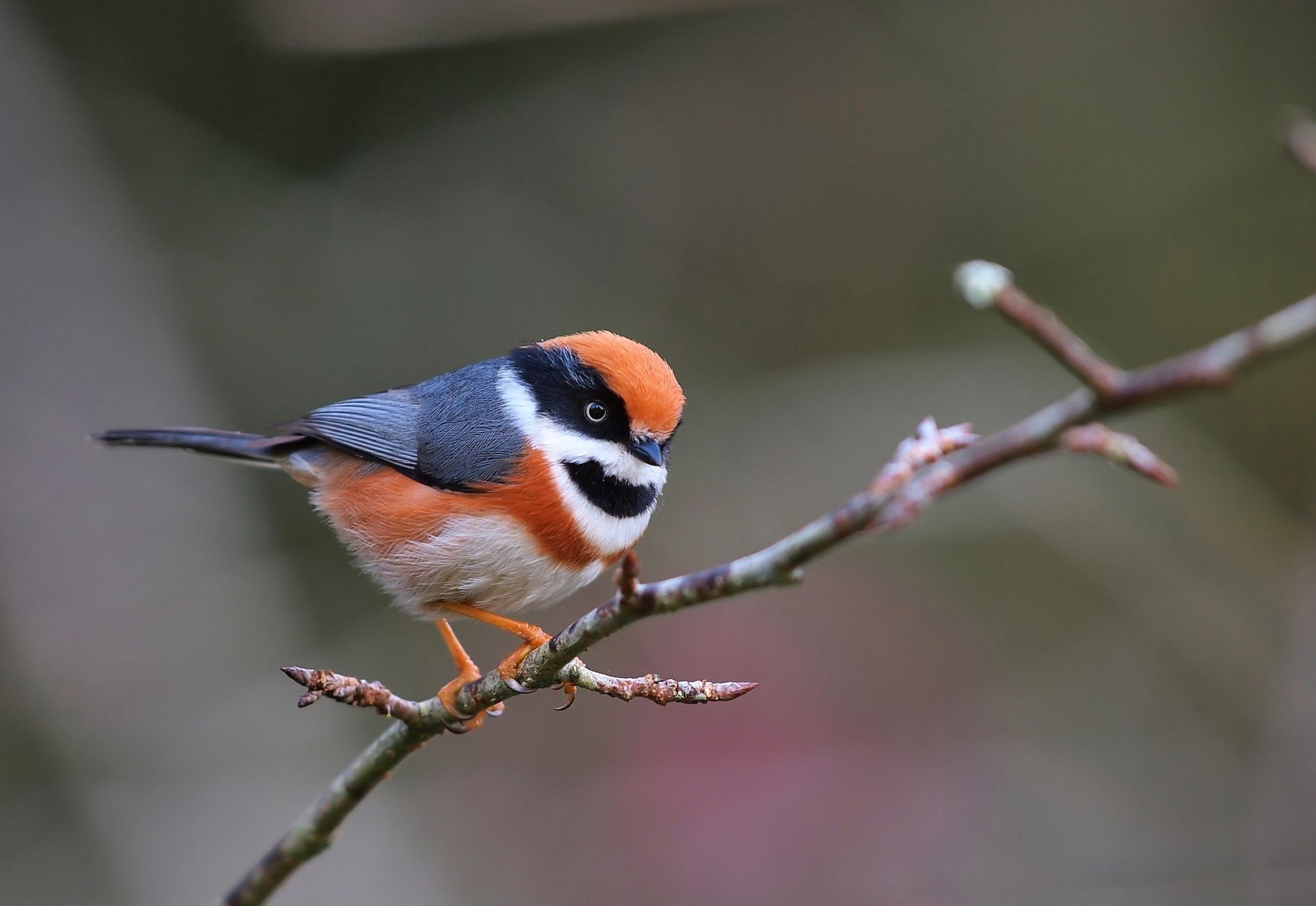 Vogel sitzt auf einer blume auf einem verschwommenen hintergrundVogel sitzt auf einer Blume auf einem verschwommenen Hintergrund
