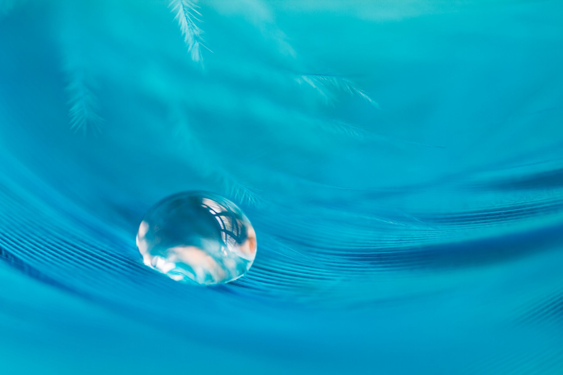 Ein Tropfen blauer Himmel Feder in der Nähe