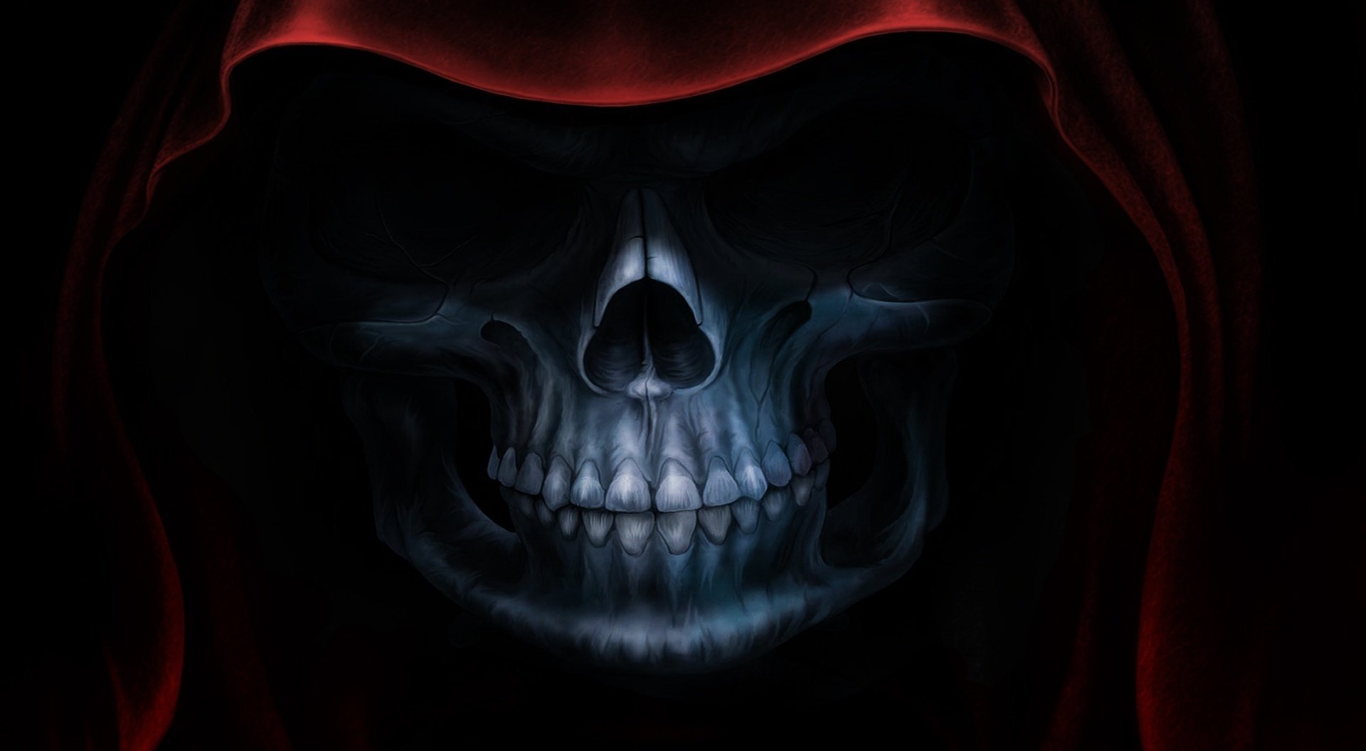 Schwarzer Hintergrund , Schädel mit feurigen Blick