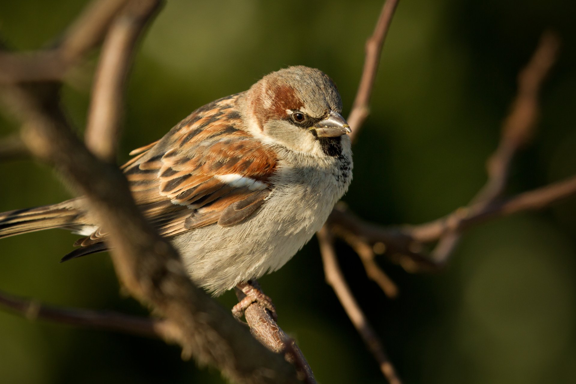 Der Spatz wärmt sich in der Sonne b