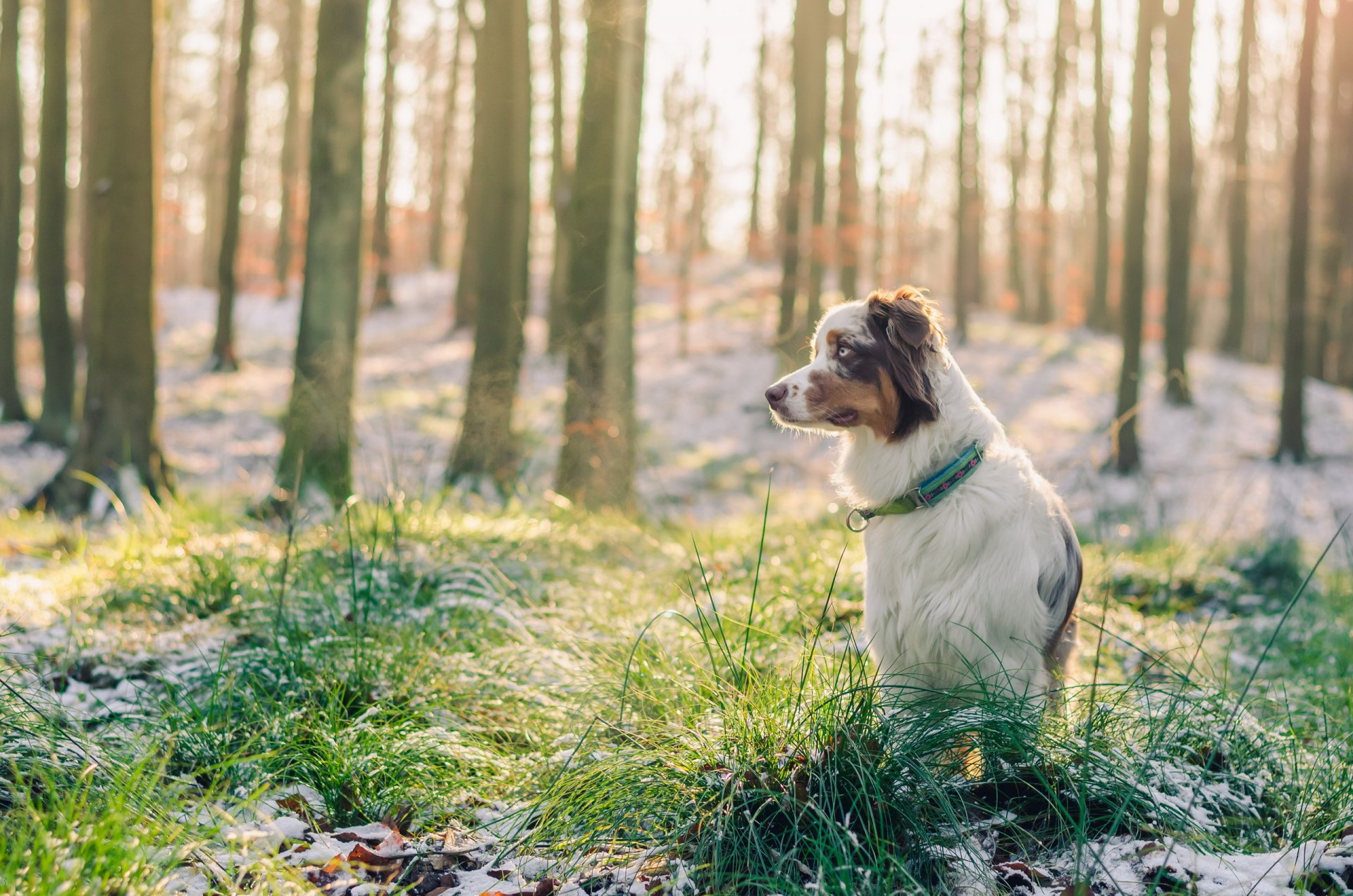 Hund im Schnee, der in die Ferne schaut