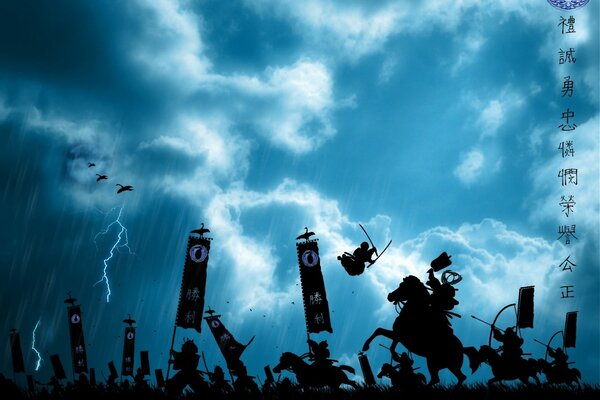 Kampfszene - Kunst mit einem bewaffneten Samurai auf einem Pferd
