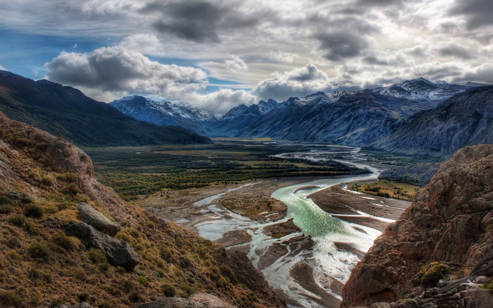Berge vor dem hintergrund des blauen himmels und der weißen wolken, die sich im wasser widerspiegelnBerge vor dem Hintergrund des blauen Himmels und der weißen Wolken, die sich im Wasser widerspiegeln