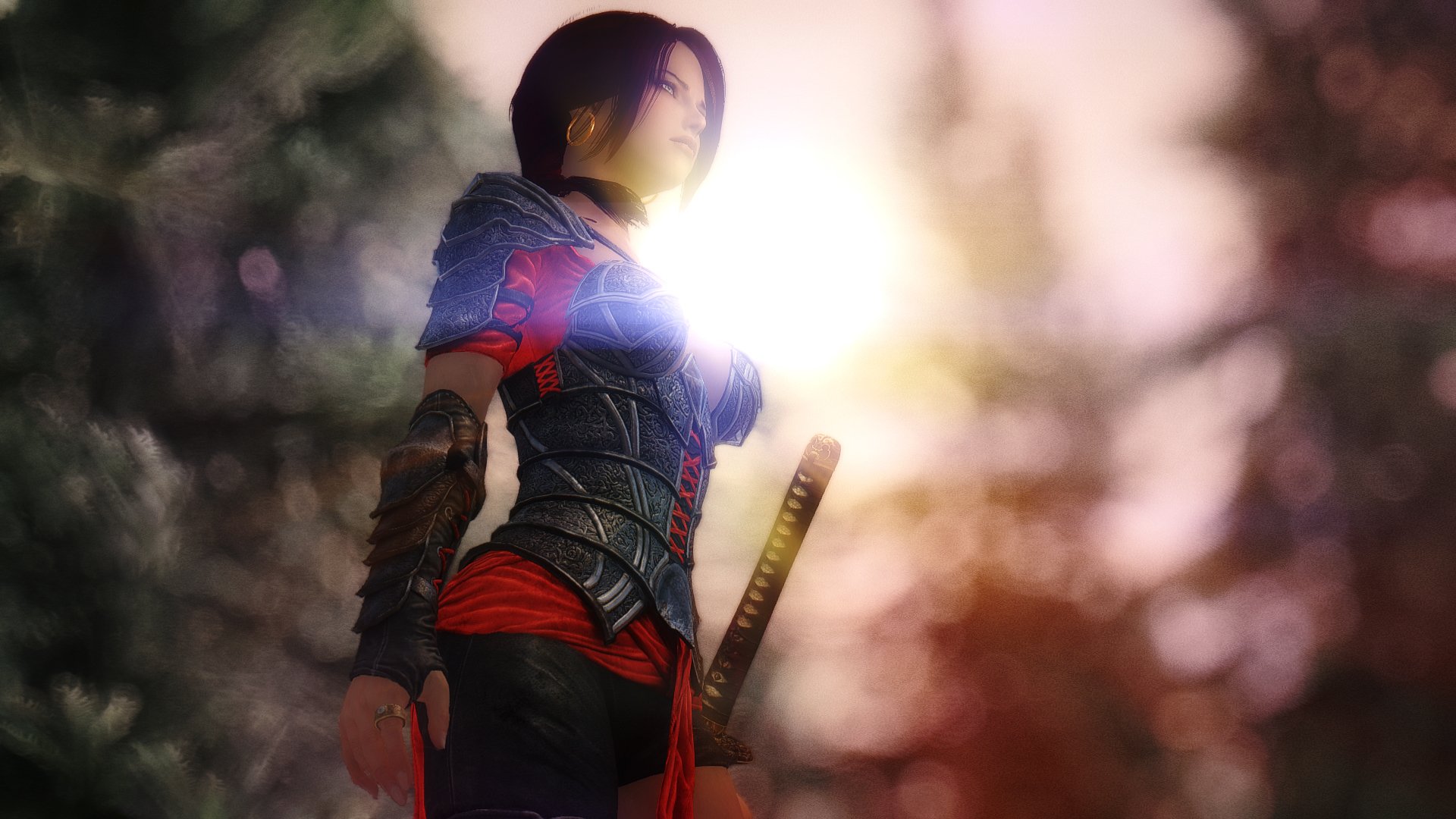 Das Mädchen ist ein Krieger in Rüstung und mit einem Schwert in der Hand
