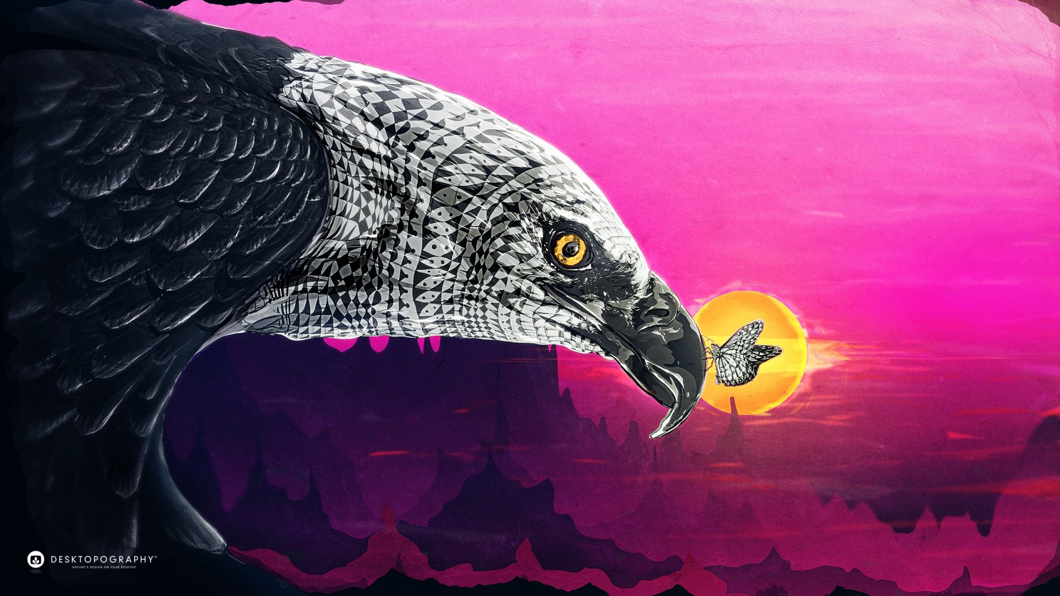 Kunst mit strahlender Sonne, grünem Feld und fliegenden Blättern