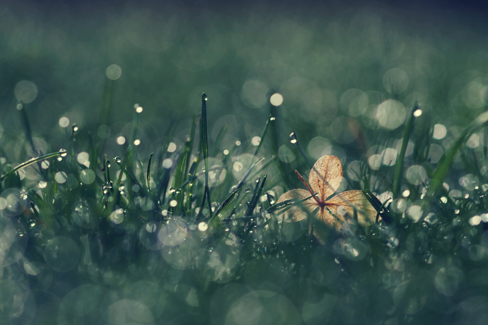 Makrofoto von Kamille in einem Feld mit Gras und Kräutern