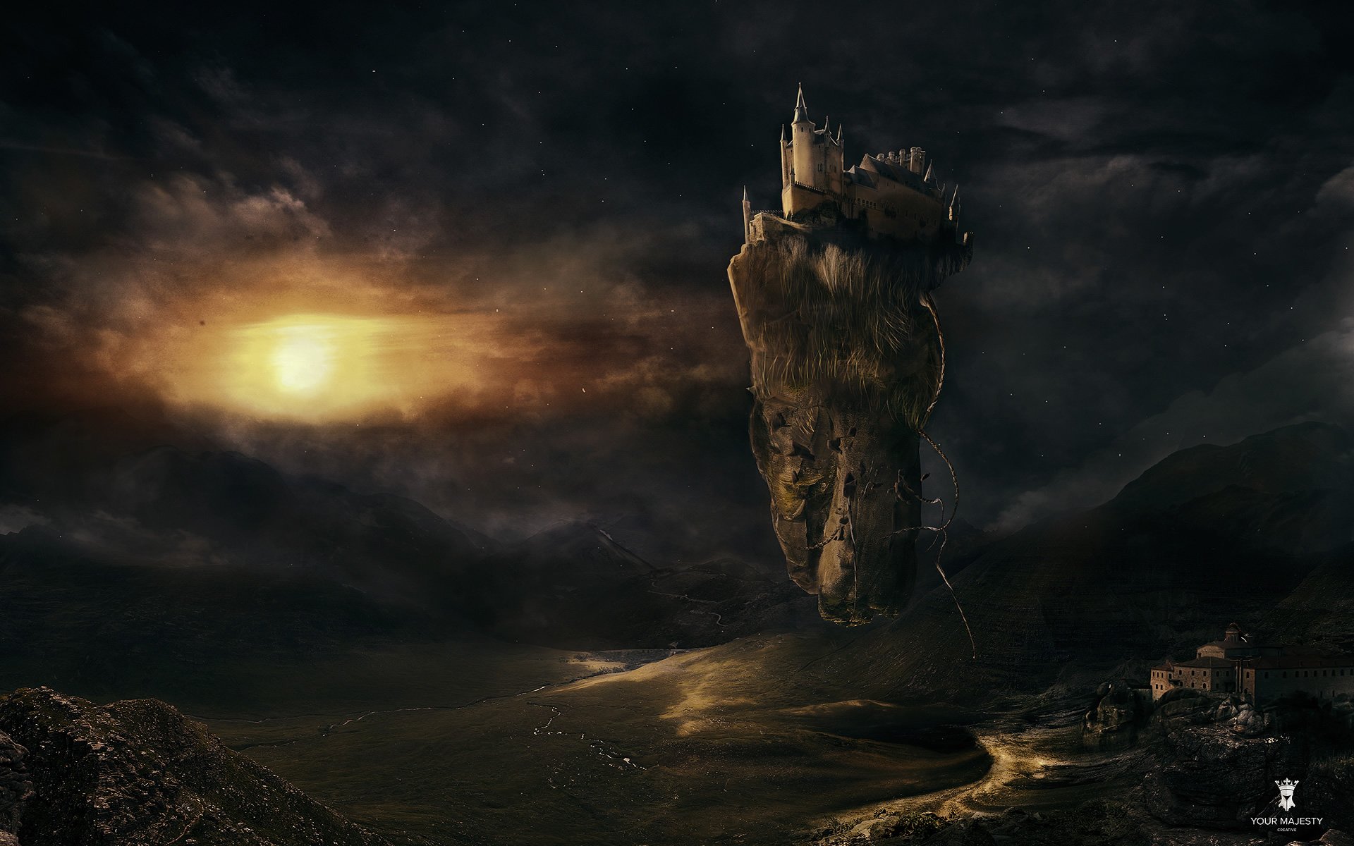 Ein altes Schloss am Ufer eines ruhigen Flusses
