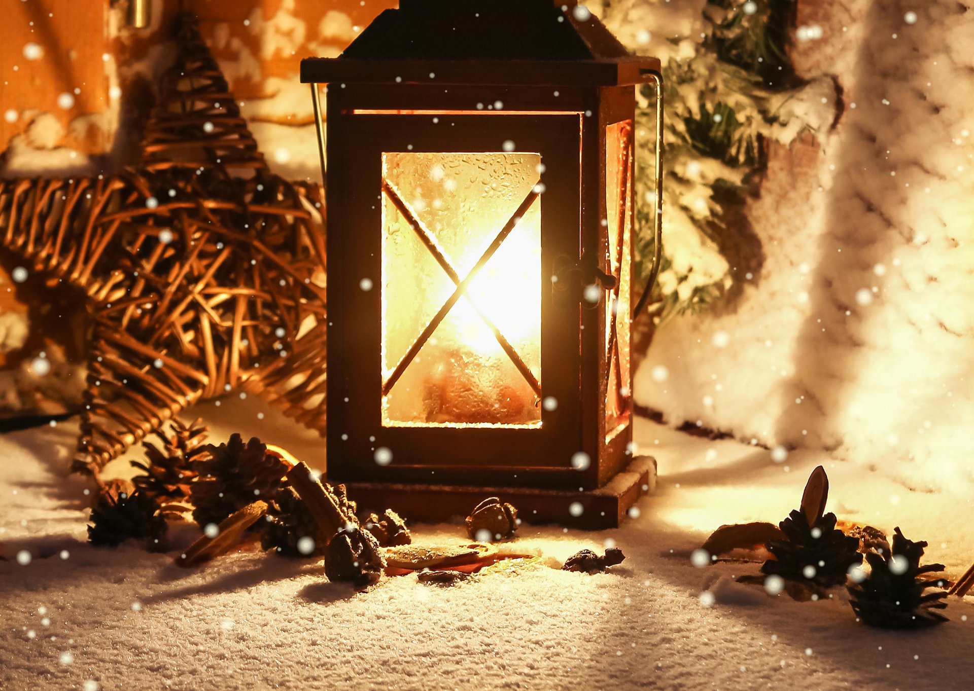 Schöne Weihnachtslaterne im Schnee