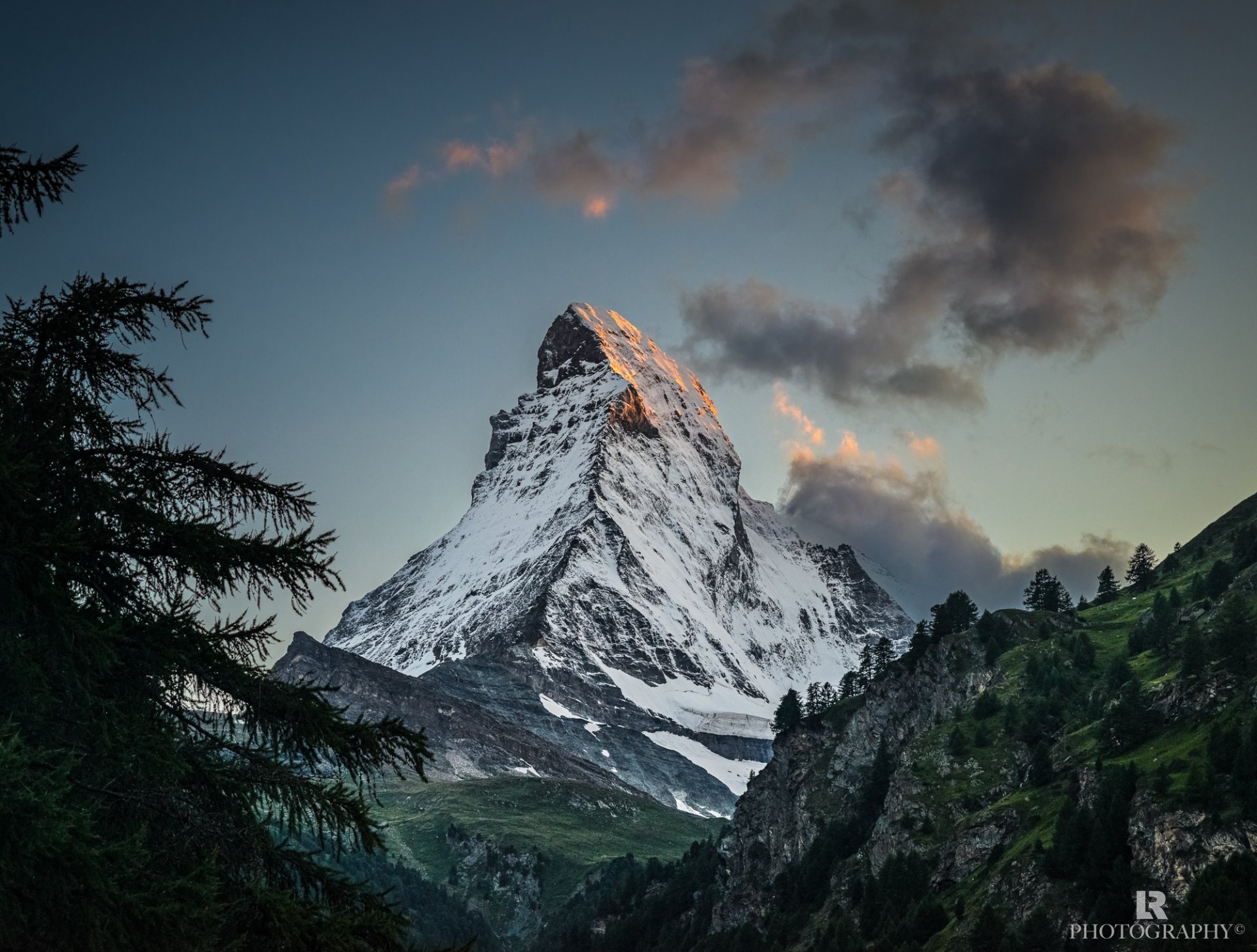 Auf dem Gipfel des Dufour-Gipfels in der Schweiz, den schönen Penninischen Alpen, fällt ein Schatten, der Schnee glitzert auf dem Gipfel