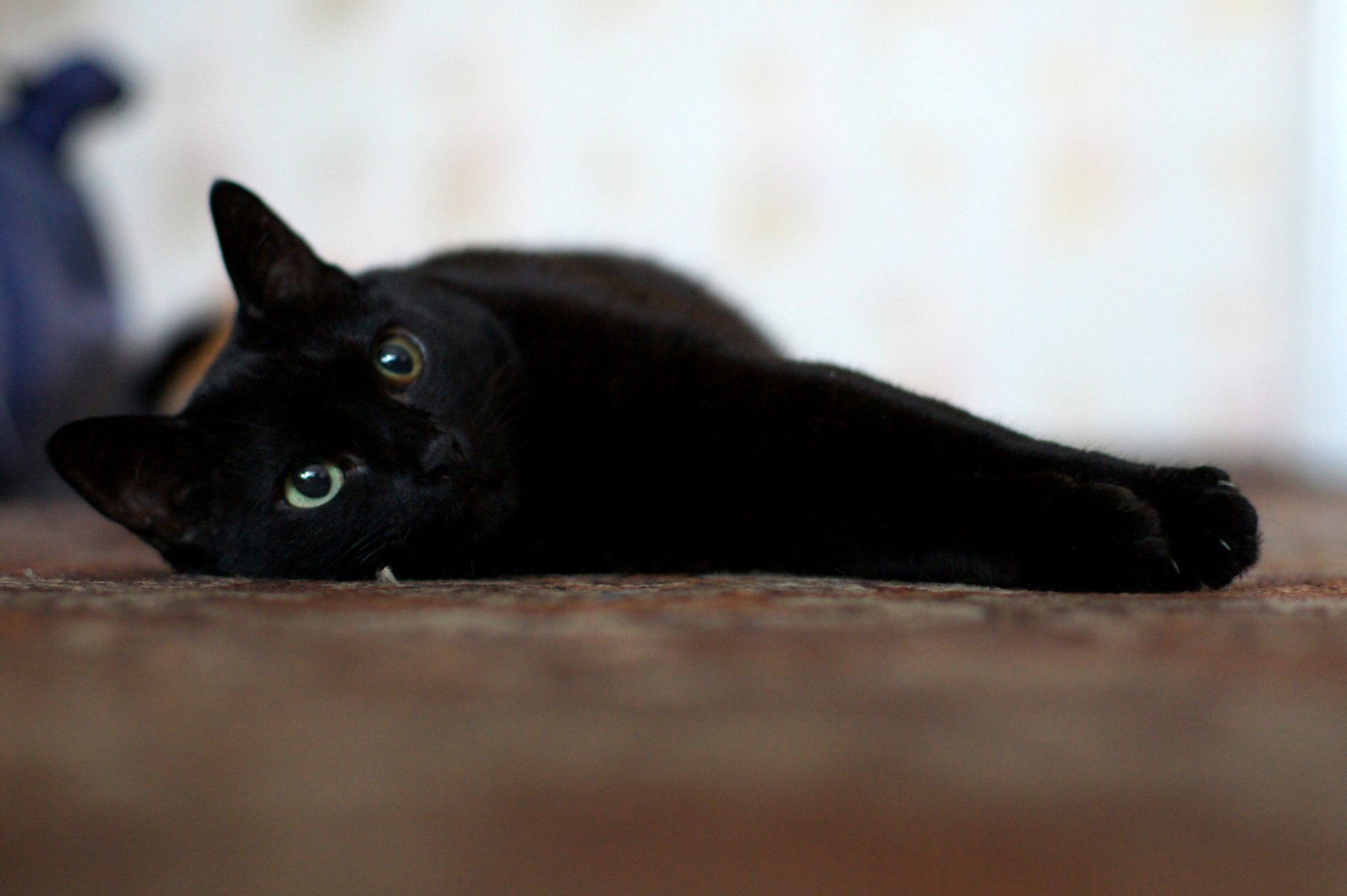 Schwarze Katze mit weißem Schnurrbart in Glückseligkeit