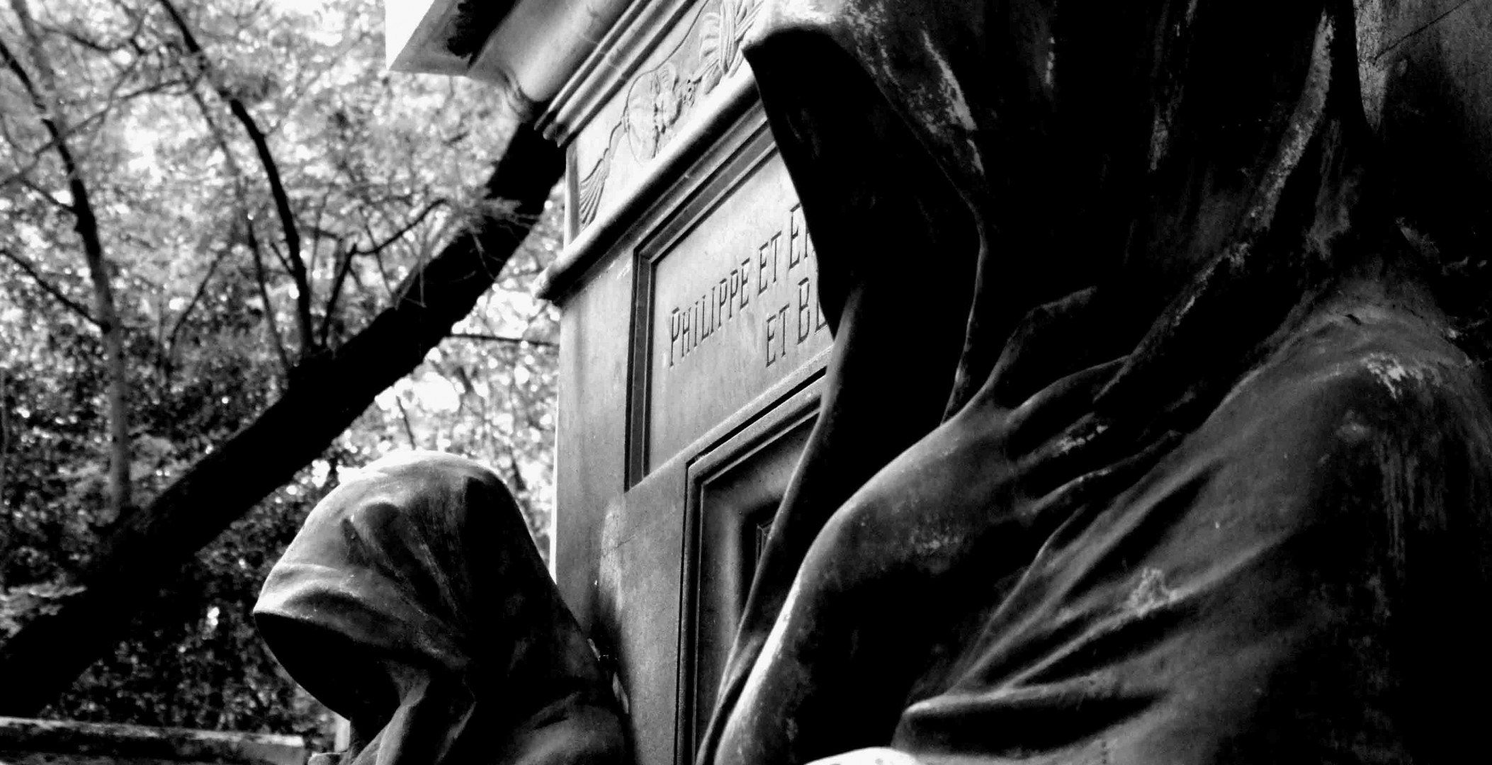 Schwarze Krypta mit Steinstatuen